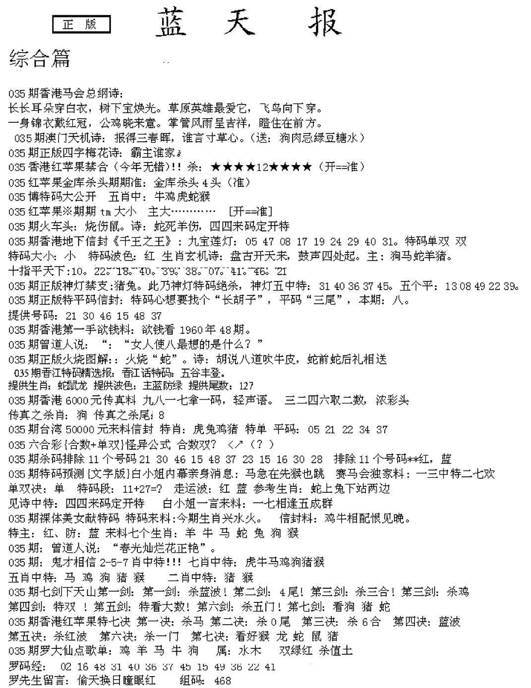 老版天机报