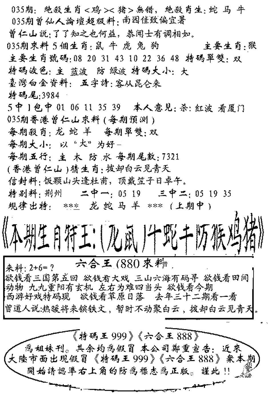 另版六合禅机A