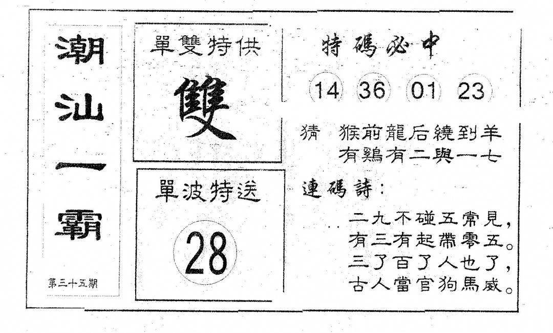郑小姐特码报A