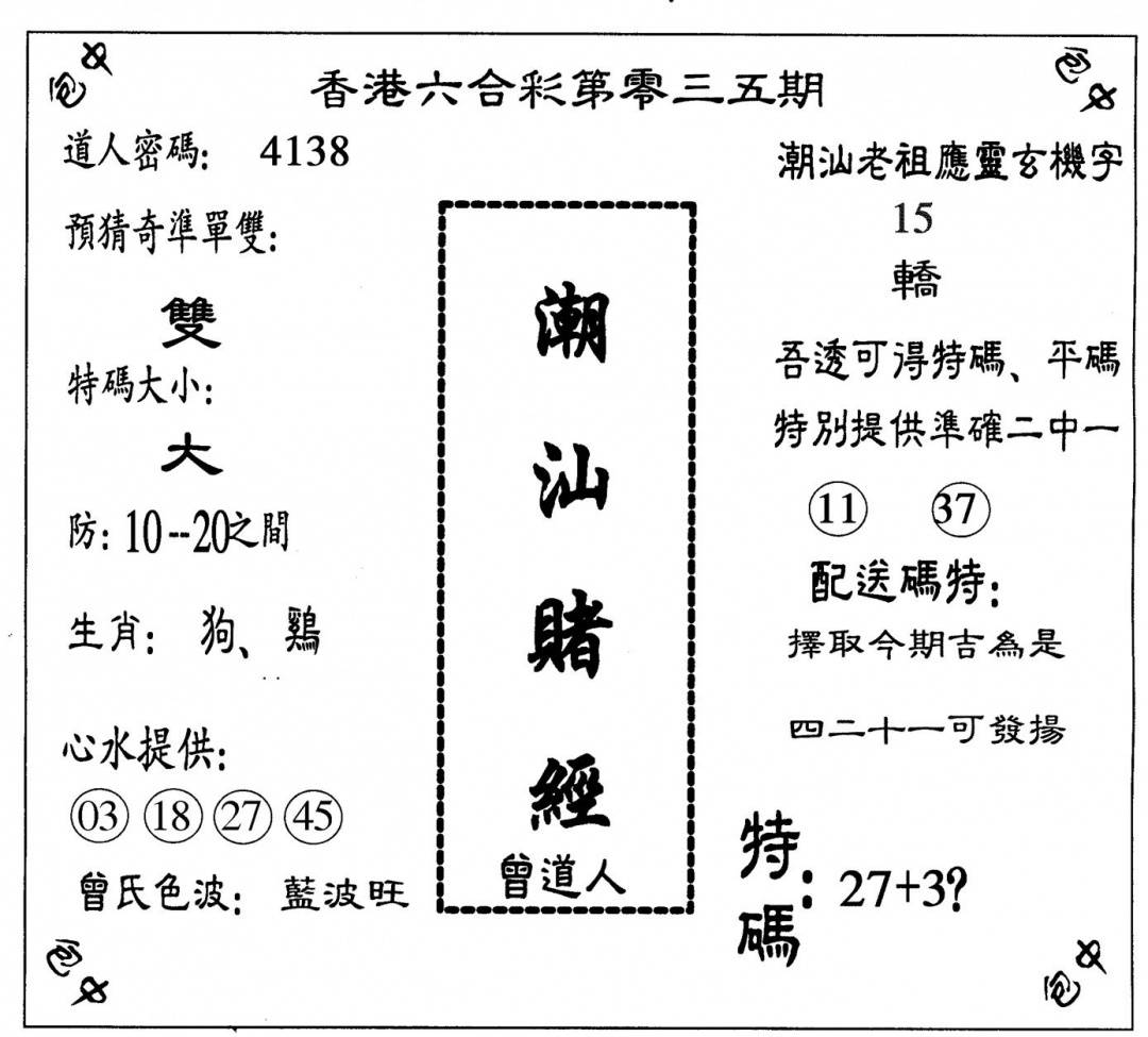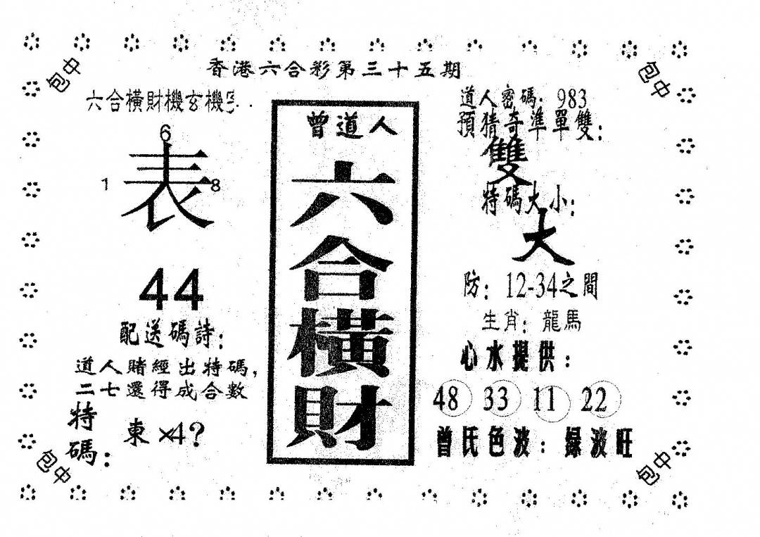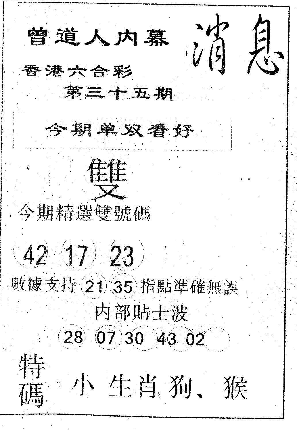 曾道人权威消息A