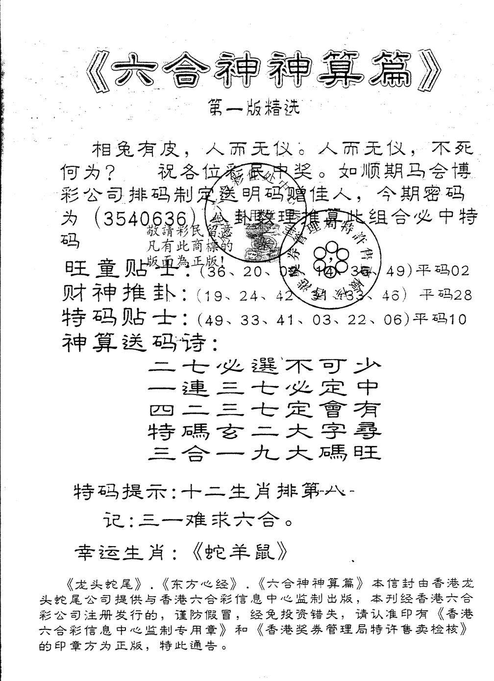 六合神算篇B