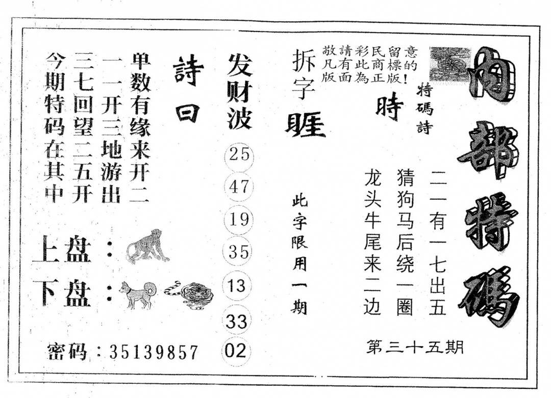另版心水特码(早图)