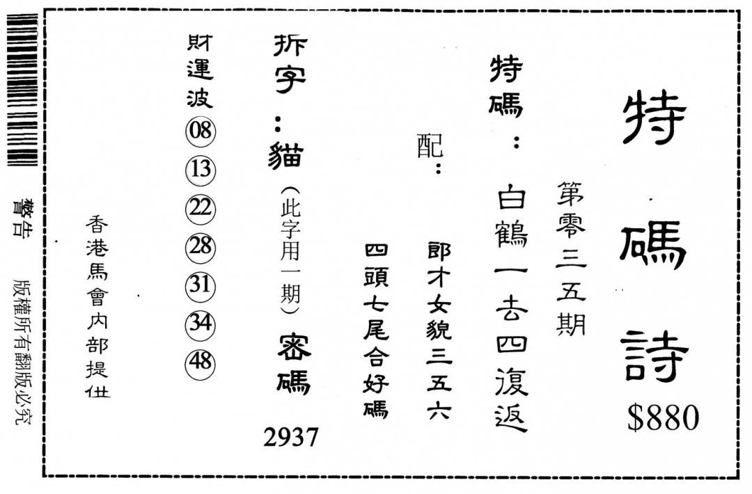 香港天机信封