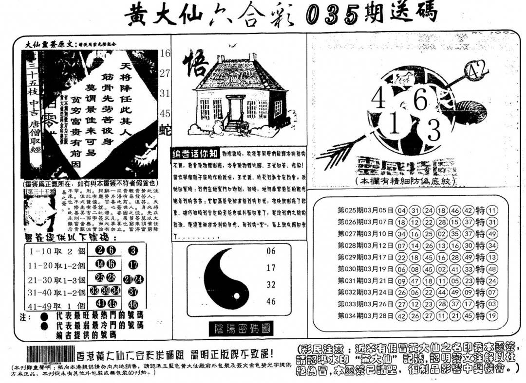 另版香港黄大仙A