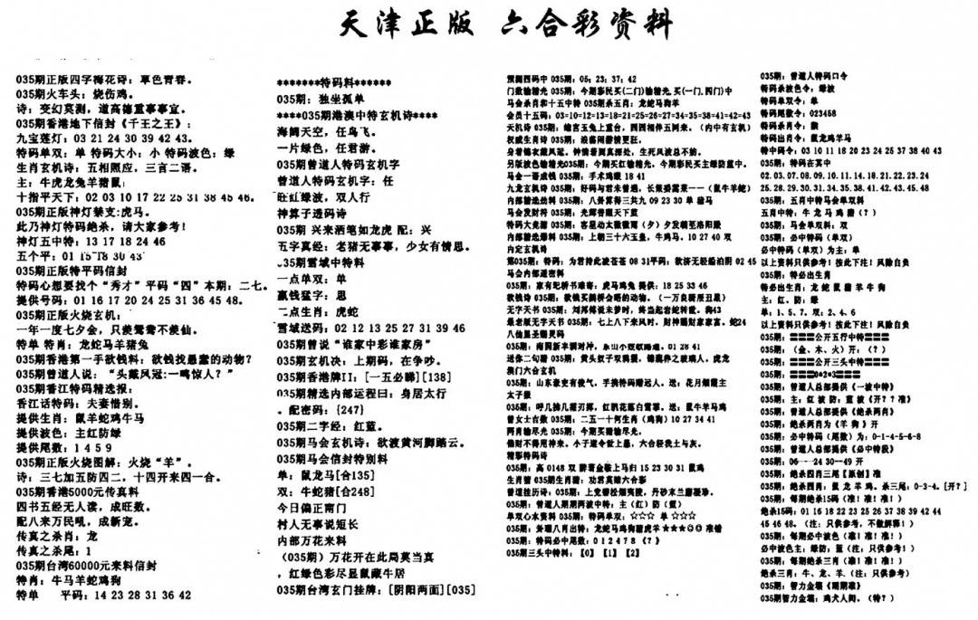 天津正版六合彩资料