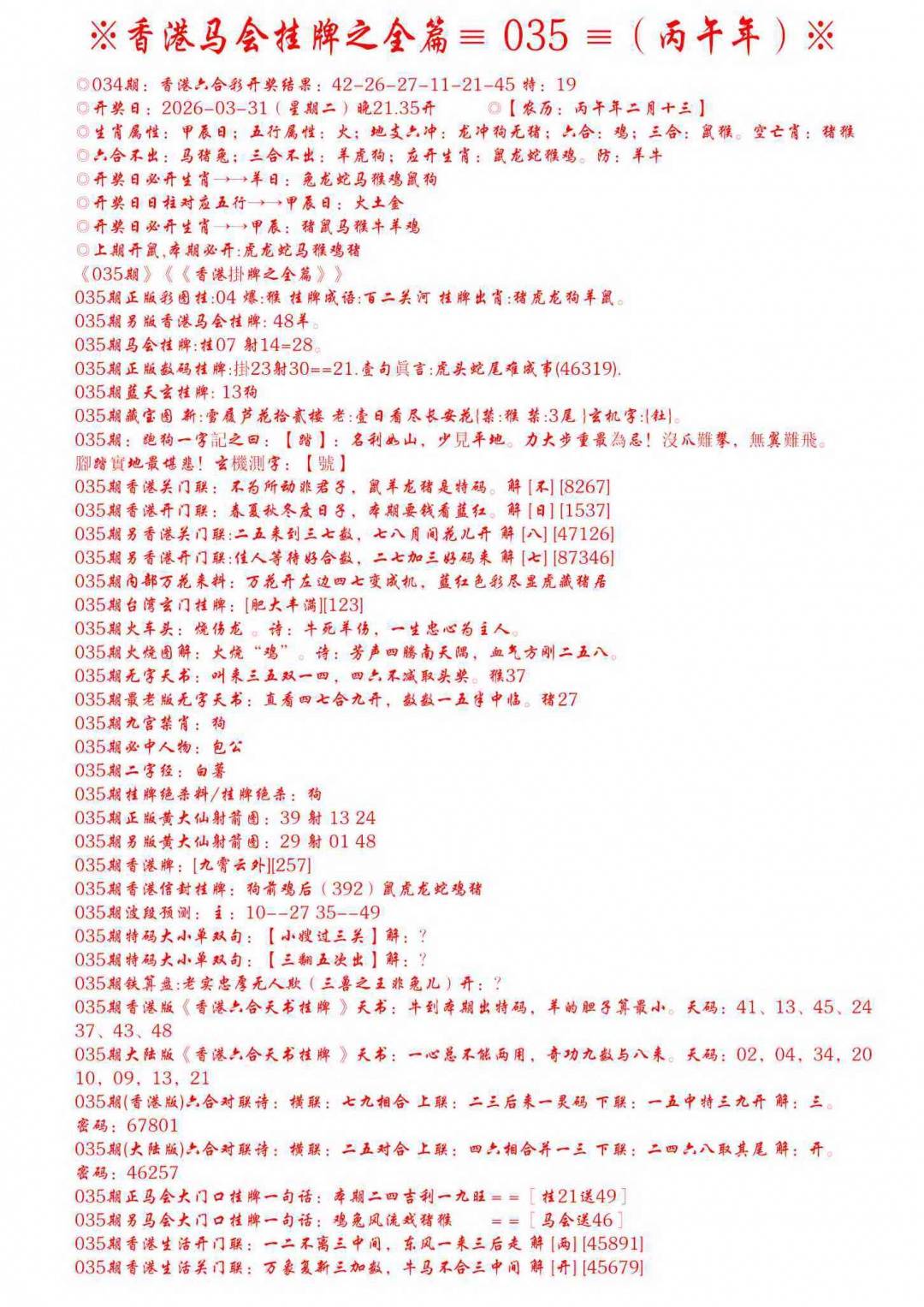 新版内部玄机A