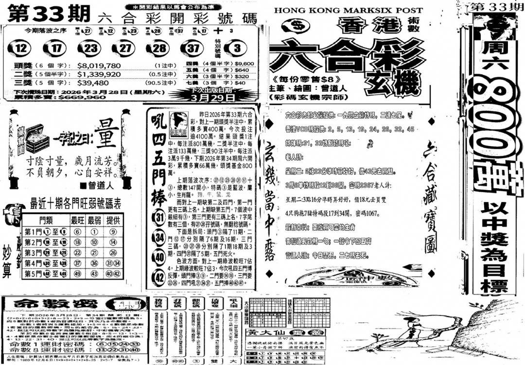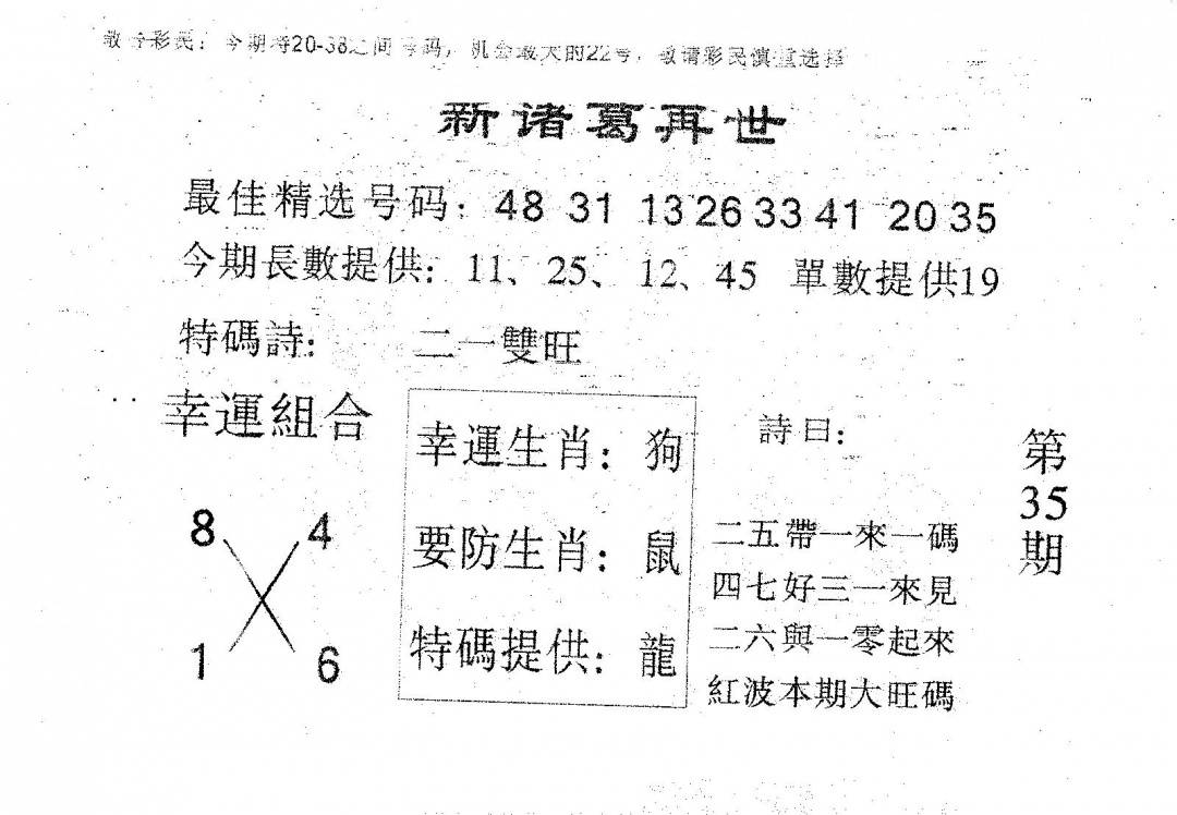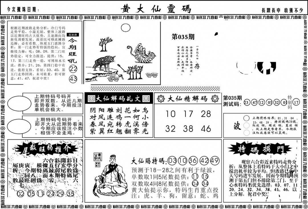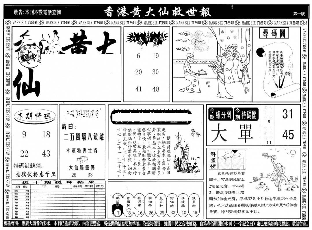另版黄大仙灵码A