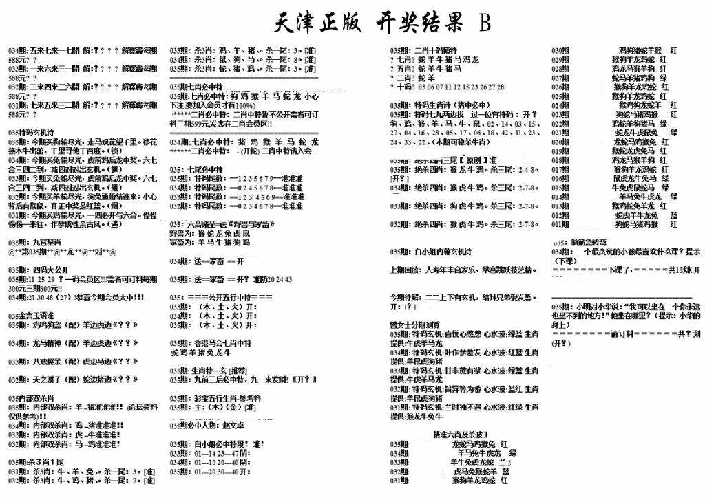 天津正版开奖结果B